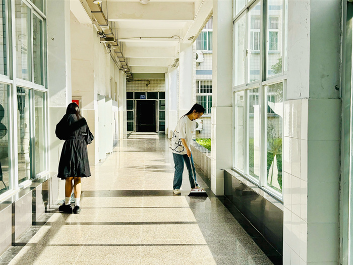除了集体学习外,该院学子还分组在校园内开展劳动清洁活动。他们有的负责清扫落叶、纸屑等垃圾,有的负责擦洗宣传栏、座椅等公共设施,部分同学还走出校门,在匡河公园帮助环卫工人清洁打扫,向社会展现尊重劳动、热爱劳动的安医学子风采。