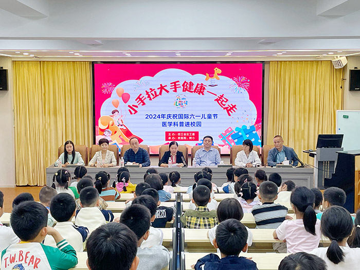 5月27日下午,在第74个“六一”国际儿童节即将到来之际,校工会女工委、校医院、附属小学联合开展了主题为“小手拉大手 健康一起走”的医学科普进校园活动。校工会主席惠继荣,校医院直属党支部书记、院长金涌,附属小学直属党支部书记、校长程孝文出席活动并致辞。