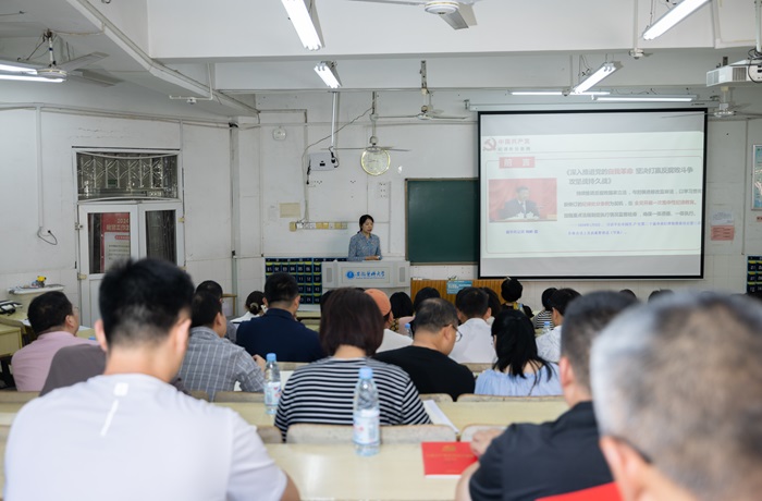 5月30日下午,人文医学学院党委书记杨秀兰以《以严明的纪律,推动全面从严治党纵深发展》为题,为学院全体教职工党员讲授党纪学习教育专题党课。