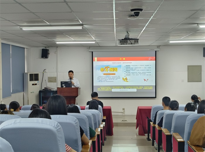 6月5日下午,护理学院开展征兵政策宣讲会,贯彻落实习近平强军思想,激发青年学生积极投身国防事业的雄心壮志。该院党委书记薛磊作政策宣讲,院党委副书记王磊主持会议。
