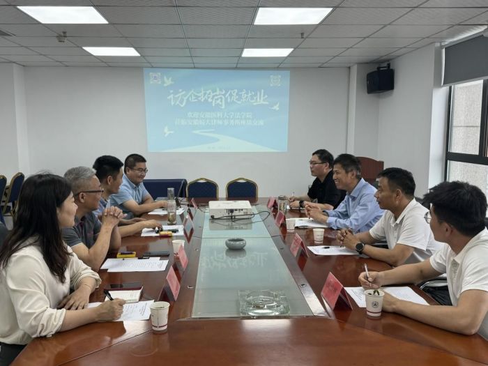 6月6日,法学院院长马青连、院党委副书记刘燕分别带队,前往四家单位开展“访企拓岗促就业活动。安徽徽商律师事务所主任吴正林、安徽皖大律师事务所主任范士明、北京盈科(合肥)律师事务所执行主任杨朔、北京大成(合肥)律师事务所管委会主任张晓伟分别参加交流座谈。
