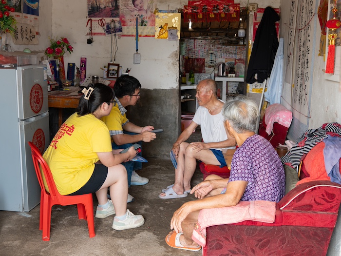 在国光社区、桥头集镇养老服务中心等地,团队举办多场“智惠课堂”,通过PPT展示,教老年人如何使用智能设备,以及如何利用手机更方便快捷地获取医疗服务。在“一老一小”亲子课堂中,队员们通过多场宣讲与实物表演,引导小朋友及其家长提高卫生健康意识,守护家庭健康。在驻村书记詹芳芳的带领下,实践团走访慰问国光社区的特困供养户,将大米、食用油等生活必需品送到他们手中,与他们亲切交谈,以实际行动弘扬“尊老、敬老、爱老、助老”的中华传统美德。在桥头集镇养老服务中心,团队成员还用镜头捕捉“最美夕阳照”,为老人们留下美好瞬间。