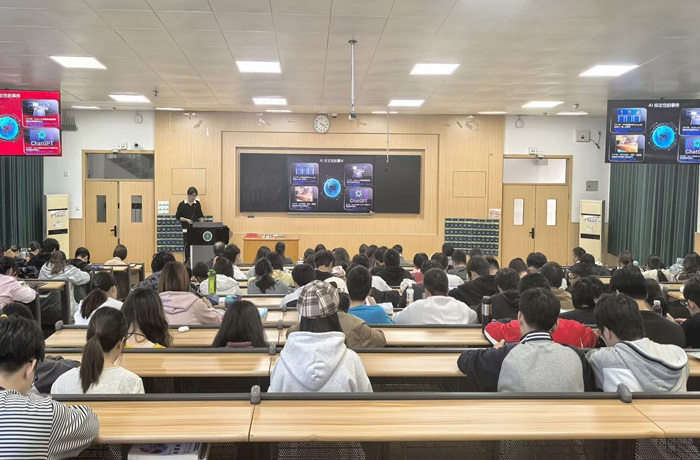 报告会上,廖大双通过“自我数字人”形象带领大家真切感受人工智能(AI)环境,系统回顾了人工智能漫长的发展历程,剖析了人工智能技术的主要流派和关键突破,并通过生动案例引发在场师生就人工智能技术快速发展对社会文化、伦理道德和人类价值观等方面的影响进行进一步思考。他表示,如GPT、BERT等大模型技术,在医疗、生命科学领域拥有巨大潜力,尤其是在医学影像诊断、个性化治疗方案制定、智能药物研发等方面的应用,正在深刻改变整个医疗行业的服务模式。他鼓励同学们在学习与生活中努力培养创新性思维,紧跟国家需求,积极关注人工智能这一话题,勇于进行跨学科学习与探索,为未来学术科研与职业发展打下坚实基础。