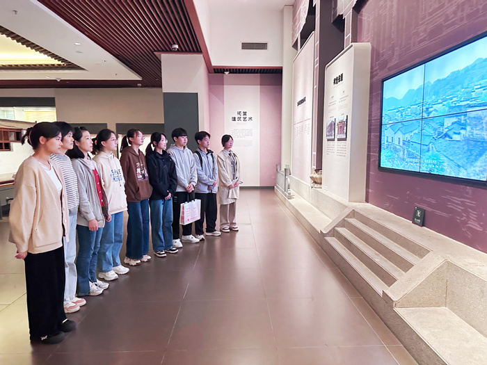 进入展厅,同学们依次参观了“安徽文明史陈列”“徽州古建筑”“安徽文房四宝”等多个展区。驻足于一幅幅珍贵的历史图片、一件件真实的历史文物前,同学们认真聆听其背后的故事,深刻感受安徽省深厚的人文历史文化底蕴和特色文化资源。在“安徽文明史陈列”展区,大家深入了解安徽的历史发展和徽商文化的形成过程。图文并茂的展板、独具特色的场景以及承载着厚重历史与文化精髓的文物,向师生再现了历史长河中安徽的沧桑巨变和壮丽历程,激发了同学们传承中华优秀传统文化的责任感和使命感。“徽州古建筑”展览通过建筑构件、模型、图片等形式,全方位展示了徽文化的起源与发展,以及徽派古建筑的独特魅力。同学们认真聆听讲解,不时交流感悟,纷纷表示被中华文化的博大精深所震撼。
