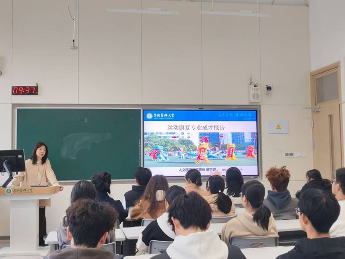 为帮助运动康复专业学生充分树立专业自信,院长解雪峰分别从运动康复专业背景、专业课程设置、专业发展现状及专业就业方向等方面,全方位向新生作了专业介绍,并面对面、点对点为新生解疑释惑,让大家充分了解运动康复专业在体育强国建设、健康中国建设中的广阔发展前景,进一步提升专业认同感,树牢专业成才意识。