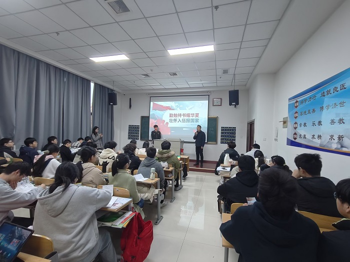 12月3日,巢湖临床医学院举办主题为“勤勉持书耀华夏,壮怀入伍报国家”的2025年大学生征兵入伍政策宣讲会,积极响应国家号召,进一步做好大学生征兵动员宣传工作,确保适龄青年全面了解最新征兵政策,激发毕业生应征入伍热情。