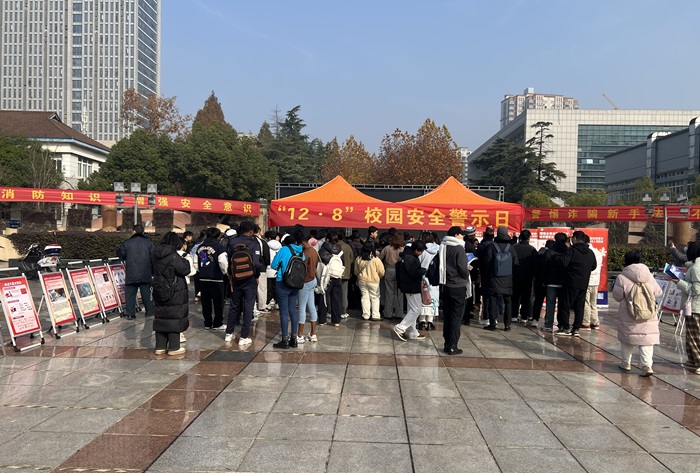 12月6日上午,校保卫处联合合肥市国家安全局、蜀山区三里庵街道,在梅山路校区文化广场举办“12·8安全警示日”宣传教育活动,进一步增强师生的安全意识和安全防范能力。