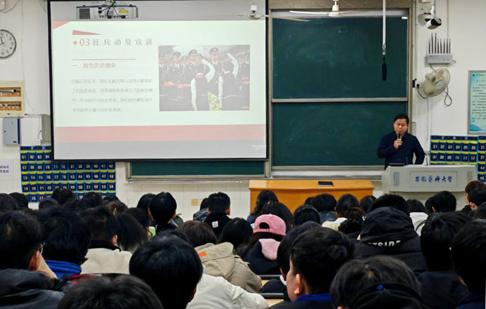 院党委书记骆广东为毕业生参军入伍作专题动员。他详细解读毕业生应征入伍的条件、流程、优惠政策以及大学生在军队中的发展前景等内容,鼓励学生树立家国情怀,肩负民族复兴历史使命,积极投身国防建设事业,把个人理想融入强军实践,以青春之名,筑强国梦想。针对实习就业,他嘱咐毕业生在实习阶段要保持乐观、谦虚的心态,做到胆大心细,不断提升理论运用于实践的能力;面对就业压力要树立正确的职业观,摒弃“等、靠、要”的思想,积极提升就业能力,了解国家就业政策,主动出击,探索更加多元化的职业道路。