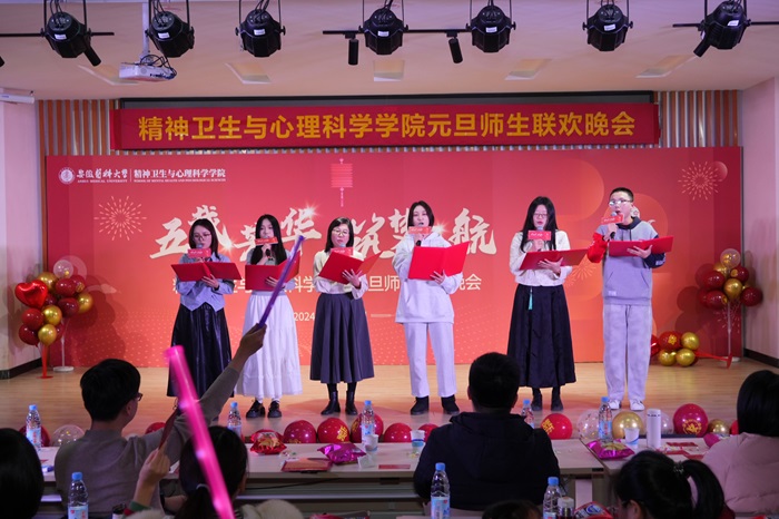 2024年12月27日晚,精神卫生与心理科学学院“五载芳华,筑梦远航”元旦师生联欢晚会在校青年之家举行。