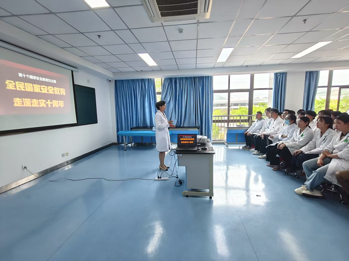 院党委副书记余皖婉以“医疗防线就是国家安全底线”为主线,为实习生开展国家安全主题讲座。她结合一系列危害国家安全的真实案例,阐释医务人员维护生物安全、数据安全的责任。她表示,实习是医生成长的关键阶段,更要绷紧国家安全这根弦。医学青年需严守医疗保密制度,警惕境外势力渗透,将职业操守融入国家总体安全布局。