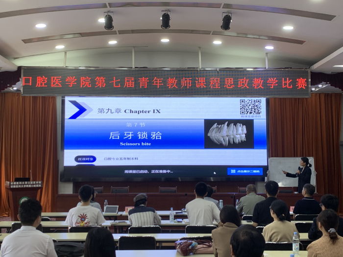 比赛以“立德树人、以文化人”为宗旨,分为教案设计和现场授课两个环节,重点考察教师的教学设计能力、思政元素融入技巧及课堂互动效果,来自全院各科教研室的14名优秀青年教师参加,涵盖儿童口腔医学、口腔解剖生理学、牙体牙髓病学、牙周病学、正畸学、口腔修复学、种植学等多个专业方向。参赛教师紧扣专业课程特点,巧妙挖掘思政元素,将家国情怀、医者仁心、科学精神、文化自信等思政内容自然融入专业知识讲授。经过激烈角逐,辛禧瑞、许敏等人分获一二三等奖。