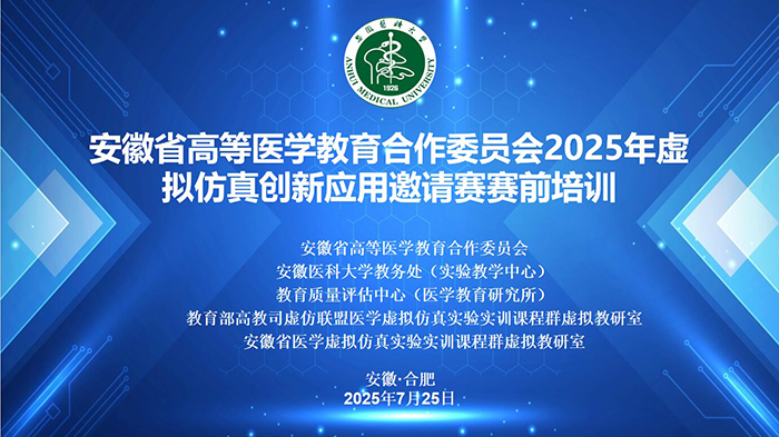 7月25日,由安徽省高等医学教育合作委员会指导,我校教务处(实验教学中心)举办的2025年安徽省虚拟仿真创新应用邀请赛赛前培训分享会在云端开启,特邀三位专家为参赛选手进行方案解读及经验分享。